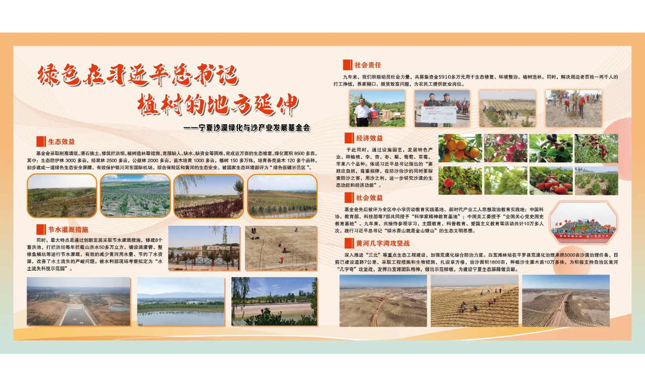 在中国家居产业迈向高质量发展的进程中,绿色与责任始终是展辰新材的核心基因。2024年,展辰在成立三十周年之际,在TATA木门感召下,携手宁夏沙漠绿化与沙产业发展基金会,联合上下游合作伙伴,于宁夏银川灵武市沙漠戈壁启动“展辰生态守护林”项目,以行动诠释“绿水青山就是金山银山”的生态理念。2025年4月28日,展辰将继续以"逐沙绘青绿 共筑生态梦"为初心,联合TATA木门、科宝·博洛尼等家居产业链伙伴,将绿色基因融入产品与行动,共建"中国家居林",推动家居行业从“制造”向“智造”与“绿造”跨越,为地球家园播种希望。