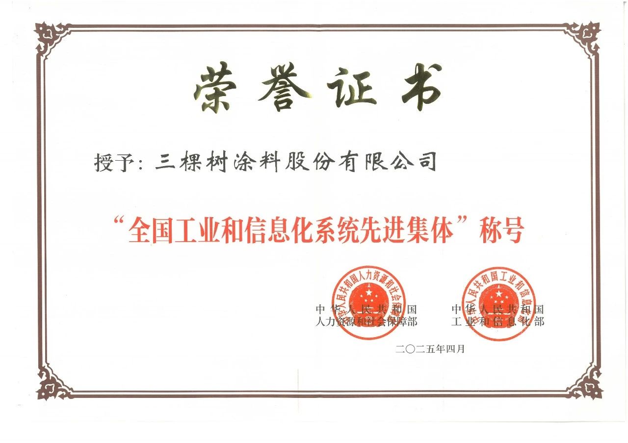 该奖项由人力资源社会保障部、工业和信息化部联合颁发,旨在表彰在推进新型工业化进程中作出卓越贡献的先进典型。此次获奖,不仅彰显了三棵树在行业内的领军地位,更体现了其以科技创新驱动产业升级、以绿色理念引领可持续发展的综合实力。