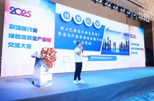 随后尹总站在国际视角,为参会人员详细解读了国内国内外技术对比以及国内形势对于彩涂板行业发展的影响。尹总表示:目前在全球市场中,欧洲主要以无铬钝化技术、激光镀层工艺为主;日本以纳米复合涂层、高耐候性镀锌板为主;美国以智能化涂镀生产线(AI质量检测)为主。而随着国内环保治理力度不断升级,对于环保的要求越来越高,国内绝大数企业都在突破环保型水性涂料、短流程镀层工艺(如硅烷处理)、低碳环保粉末连续喷涂工艺 、EB光固涂料及电子束固化技术的应用。