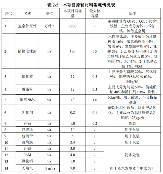 根据建设单位提供的资料,本项目原辅材料消耗情况如下: