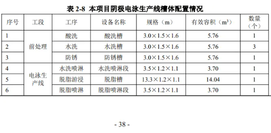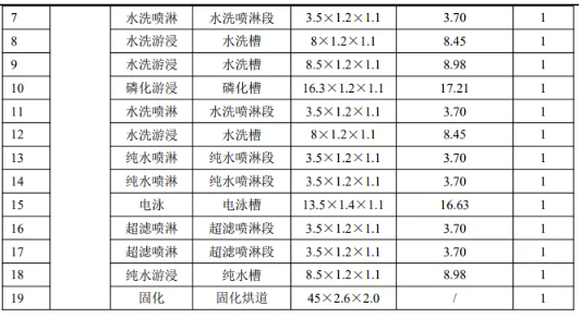 本项目配备全密闭、自动化电泳生产线,生产线槽体均架空敷设,离地高度约 0.6m,生产线设置干湿分离。本项目电泳生产线槽体配置情况如下: