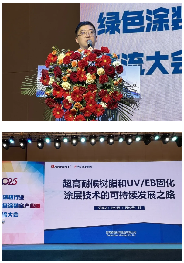 4月28日,由涂料采购网主办、邦弗特(山东)新材料有限公司协办的2025年彩涂板行业绿色betvlctor伟德手机登录 全产业链交流大会在山东博兴举办。邦弗特新材料股份有限公司董事长李新雄,公司董事孙中新,邦弗特(山东)新材料有限公司总经理郭永良,产品研发总监孙立岩等出席会议。此次大会以“向绿而行,谋新质发展”为主题,邦弗特聚焦彩涂板行业涂饰的可持续发展,展示了卷材涂层用全体系树脂解决方案,与行业人士共话彩涂板未来。