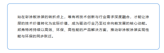 邦弗特董事长李新雄在接受涂料采购网采访过程中,从行业与企业两个层面阐述了彩涂板涂层绿色转型的深远意义,并分享了邦弗特在发展高性能、环保树脂方面的实践与探索。