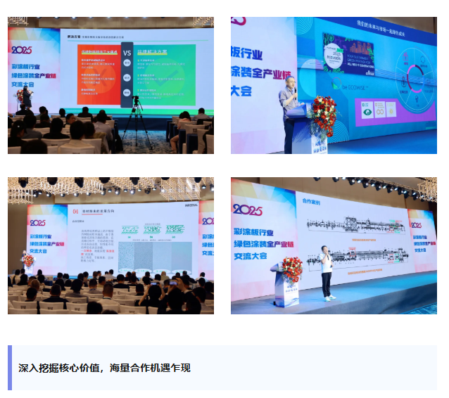 2025年彩涂板行业绿色涂装全产业链交流大会,不仅是一场行业盛会,更搭建了交流合作的平台,连接了行业现在与未来,堪称一次改变企业命运的战略机遇!与会嘉宾带来的前沿理念与创新方案,如同点亮黑暗的火炬,为企业照亮转型升级的赛道,创造弯道超车的绝佳机会。相信在众多行业同仁的共同努力下,彩涂板行业必将在新质发展的道路上迈出更加坚实的步伐,实现绿色转型与高质量发展的新跨越。