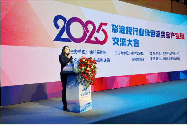 大会伊始,涂料采购网市场总监江雪发表开幕致辞,她对到场的行业同仁表示热烈欢迎,并指出,众人相聚“中国金属板材之乡”,正是积极响应国家“双碳”战略部署的重要行动。作为涂料全产业链专业的新媒体服务平台,涂料采购网始终以推动行业高质量发展为使命,在监督行业政策落地、资源整合等方面持续发力。