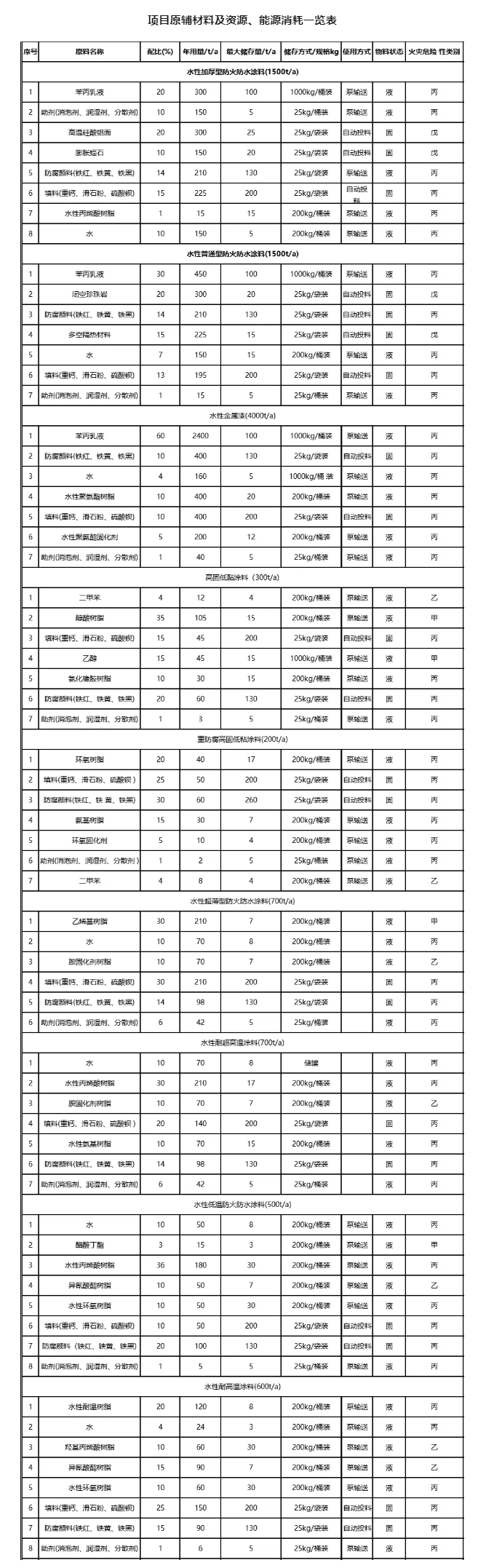 据涂料采购网了解,该项目安徽省宿州市萧县永堌镇永堌化工园区88号,总投资20387.41万元,环保投资210万元,年产10000吨新型防火防水涂料项目,其中年产水性加厚型防火防水涂料1500吨,年产水性普通型防火防水涂料1500吨,年产水性金属漆4000吨,年产水性超薄型防火防水涂料700吨,年产水性耐超高温涂料700吨,年产水性低温防火防水涂料500吨,年产水性耐高温涂料600吨,年产高固低黏涂料300吨,年产重防腐高固低粘涂料200吨。