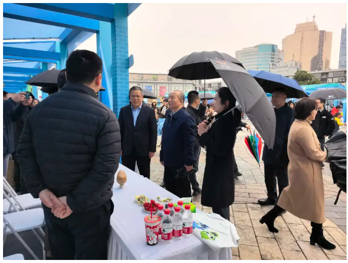 生态环境部固体司副司长温雪峰,浙江省生态环境厅副厅长周树勋与新福钛白粉现场人员亲切交流