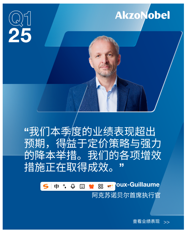 尽管美国关税政策加剧了宏观经济的波动,但阿克苏诺贝尔的“本地化生产”与“采购去风险化”战略方针,使企业能够在很大程度上免受基础成本与交付能力的直接影响。然而,在全球贸易格局重构期,伴随着经济增长放缓,客户需求将变得更加谨慎,企业预期或将受到间接影响。因此,将坚定地专注于自主优化举措,确保实现全年预期目标,打造更为强大的阿克苏诺贝尔。