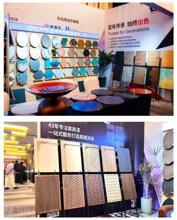 在年会上,紫荆花展示了多款针对定制家居行业的专业家具涂料产品,包括东方雅韵高透系列、液体金属系列、家具艺术漆效果系列、意式高透系列、现代复古系列、5D工艺系列等。这些产品不仅具备卓越的装饰效果,还能满足定制家居在耐磨性、耐候性、抗污性、环保健康等多方面的严格要求,为定制家居企业提供了优质的涂装解决方案。