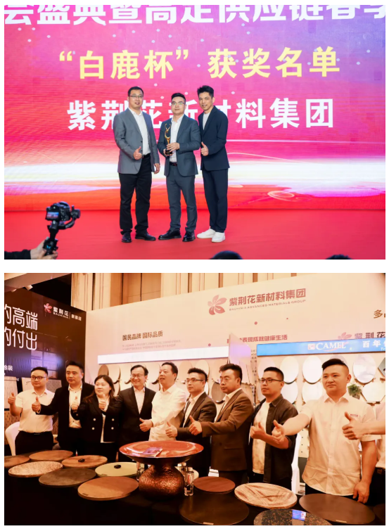 2025年4月21日,由紫荆花新材料集团冠名支持的2025温州市定制家居商会年会盛典暨高定供应链春季新品发布会在温州城中希尔顿酒店隆重举行,紫荆花新材料集团旗下紫荆花家具漆和骆驼木器漆联袂亮相,闪耀全场。