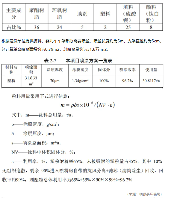 近日,临颍县环保局受理临颍县骁图金属制品有限公司年产40万辆高智能童车建设项目,该项目投资2000万元,配套一条全自喷涂线,包含喷枪6把,年消耗伟德客户端官网30.8117吨。 塑粉,即静电伟德客户端官网,是一种热固性伟德客户端官网,密度为 1.34g/cm3.主 要由以下成分组成: