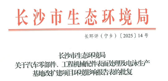 长沙瑞正涂装科技有限公司于2025年3月10日提交的建设项目环境影响评价审批申请报告和《汽车零部件、工程机械配件表面处理及电泳生产基地改扩建项目环境影响报告表》及相关资料收悉,我局于2025年3月11日对项目进行受理并组织技术审查。