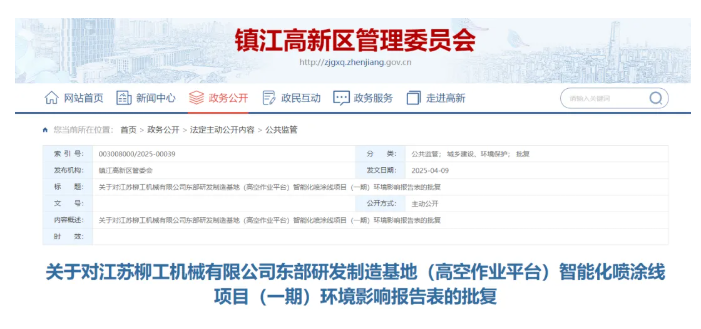 你公司报送的《东部研发制造基地(高空作业平台)智能化喷涂线项目(一期)环境影响报告表》(以下简称“报告表”)及第三方评估意见收悉,经研究,批复如下: