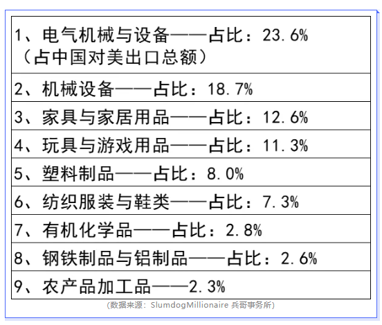 从中国对美国出口结构来看,2024年全年中美贸易额为6882.8亿美元。其中,中国对美国出口5246.56亿美元(37337.22亿元人民币),占中国出口总额的14.6%。如果美国对这5246.56亿美元商品征税34%关税,简单测算,关税成本将上涨约1783.83亿美元。这种高额关税对中国外贸企业冲击巨大,中国外贸企业长期处于微利状态,难以承受如此高的关税负担,部分企业甚至面临倒闭风险,对美业务近乎“停滞”。