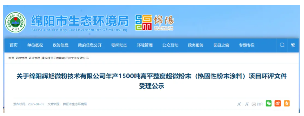 近日,绵阳市生态环境局发布关于绵阳辉旭微粉技术有限公司年产1500吨高平整度超微粉末(热固性伟德客户端官网)项目环评文件受理公示。