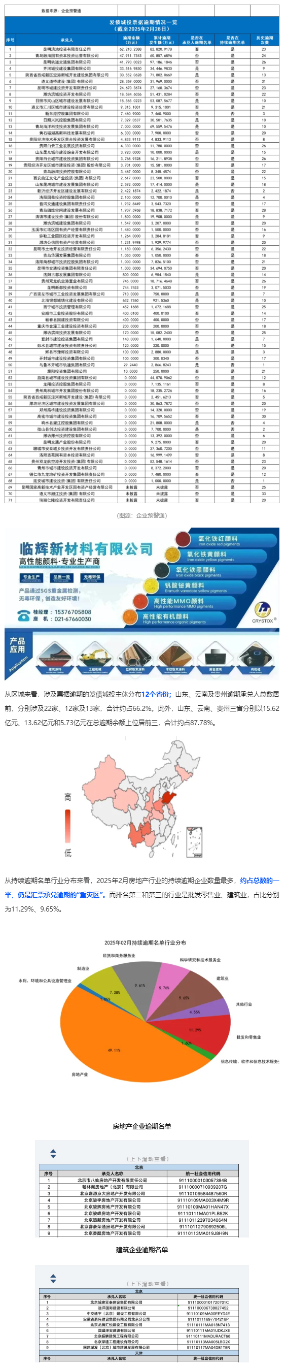 在公布的5314家持续逾期名单中,涉及71家发债城投,票据总逾期余额39.84亿元,纳入承兑人逾期名单20家,纳入持续逾期名单65家。