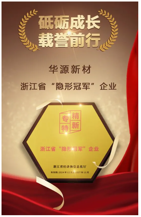 日前,在浙江省经济和信息化厅公布的“浙江省隐形冠军企业”名录中,华源新材再度获评这一殊荣,这无疑是对其多年来专注研发、创新发展的高度认可。早在2019年,华源新材就已首次入选该名录,此次再度摘得桂冠,充分彰显了其在行业细分领域的持续领跑实力,也凸显了国家政策对华源新材发展的有力助推。