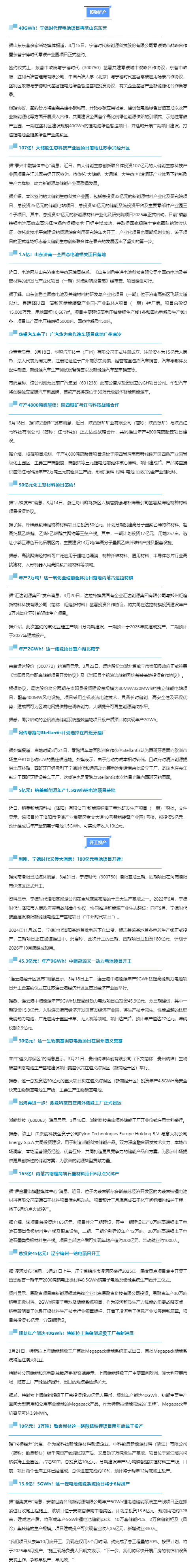 40GWh!宁德时代锂电池项目再落山东东营;107亿!大储能生态科技产业园项目落地江苏泰兴经开区;宁德时代又传大消息!180亿元电池项目开建!45.3亿元!年产9GWh!中嶒能源又一动力电池项目开工;30亿元!这一生物碳基固态电池项目在贵州遵义奠基……