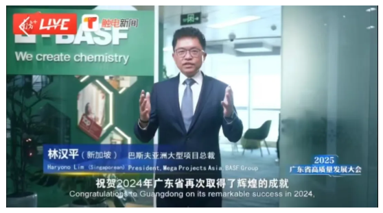 2025年2月5日,巴斯夫集团亚洲大型项目总裁林汉平(Haryono Lim)在广东省高质量发展大会分论坛上表示,巴斯夫湛江一体化基地的核心装置正稳步推进建设,计划在2025年年底投产。这既是巴斯夫投资中国的一个重要里程碑,也是广东速度的再一次体现。