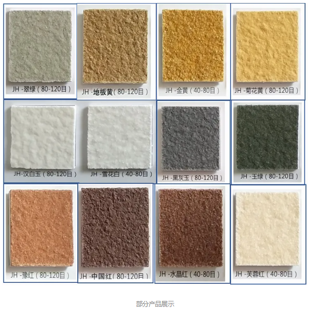 另外,自主矿山是金辉彩砂的一大法宝。矿山有着丰富的颜色种类,像白色、红色、黄色、黑色、灰色、蓝色、绿色等,为企业的产品提供了丰富的原料选择。因为原料库存充足,企业既能保证产品品种齐全、库存充足,实现一站式采供,做到客户下单即能立即发货,又能确保产品品质的稳定性,这对于涂料生产企业来说,可是至关重要的。