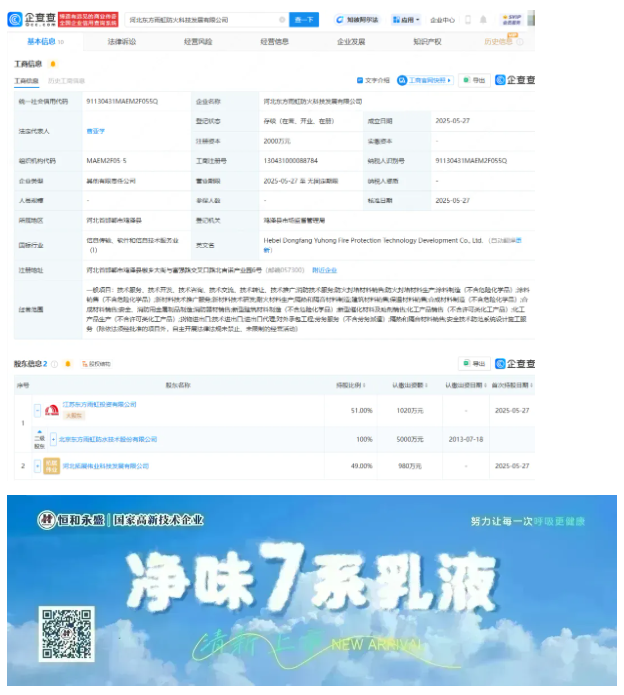 近期,东方雨虹的重磅举措在涂料行业引发广泛关注。企查查数据显示,河北东方雨虹防火科技发展有限公司于 5 月 27 日正式成立,曹亚学出任法定代表人,注册资本达 2000 万元人民币。该公司由江苏东方雨虹投资有限公司、河北拓展伟业科技发展有限公司共同持股,持股比例分别为 51% 和 49%。这一颇具规模的资本投入,不仅彰显了东方雨虹强势进军防火材料领域的决心,更预示着其对涂料行业格局重塑的战略雄心。