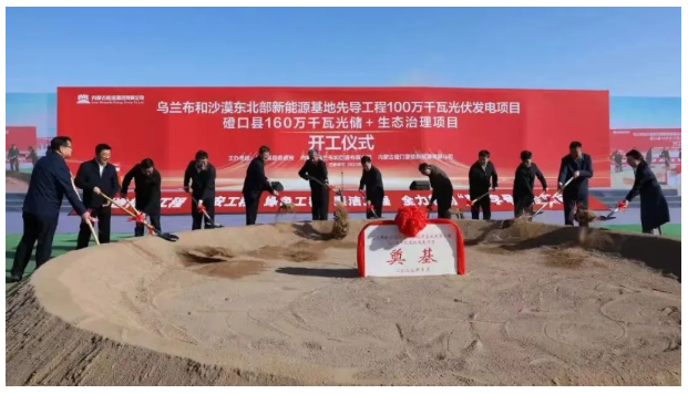 新能源总规模12GW,包括风电3.5GW、光伏8.5GW,由蒙能集团牵头建设。项目采用板上发电、板间种植、板下固沙相结合的模式,实现光伏+生态治理一体设计、同步实施,将沙漠治理与生态治理深度融合,可实现多种能源协调互补,推动资源优势转化为经济优势。该项目全容量并网投运后,预计年发电量可达33亿千瓦时,每年可节约标准煤100万吨,减少二氧化碳排放量282万吨,实现沙漠生态治理近4万亩。
