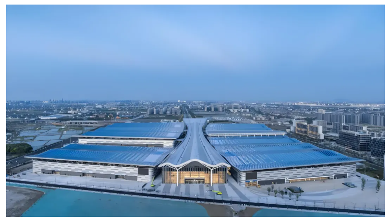 杭州大会展中心使用立昌PVDF(70%)固体氟碳涂料蓝色喷涂的铝单板12万方。