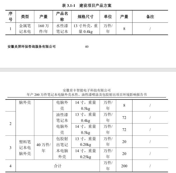 据涂料采购网了解,日前,宣城市生态环境局发布《安徽育丰智能电子科技有限公司年产200万件笔记本电脑外壳水性、油性漆喷涂及包胶射出项目环境影响报告书(送审稿)》受理公示。