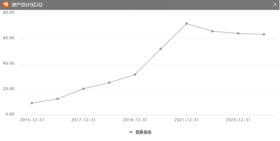 相对于负债情况来看,亚士创能的总资产也并不是很高,2015年亚士创能的总资产为9.33亿,2021年总资产达到峰值,为71.82亿元,这一年,亚士创能的负债率为77%,而到了2024年底,亚士创能的总资产为63.41亿,较2021年下降了11%。从负债和资产对比来看,亚士创能2024年的资总产在缩水,但是其负债却是在上升,这是一个极度不好的现象。