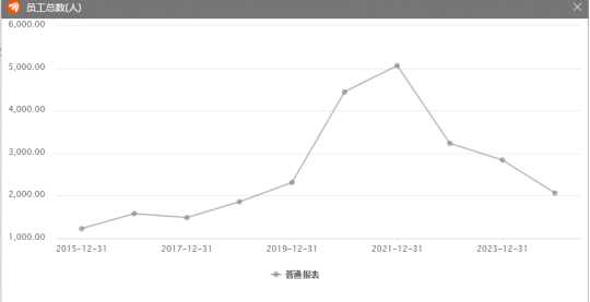 据公开消息显示,亚士创能自2015年以来,其员工总数在2015年至2021年处于持续上升阶段,从2015年的1233人扩编到5061人,大幅度增长310%。自2022年开始,亚士创能开始了大规模的裁员,到2024年12月31日,亚士创能的员工人数为2065人,较2021年底,裁员2996人,裁员比例达到了59%。