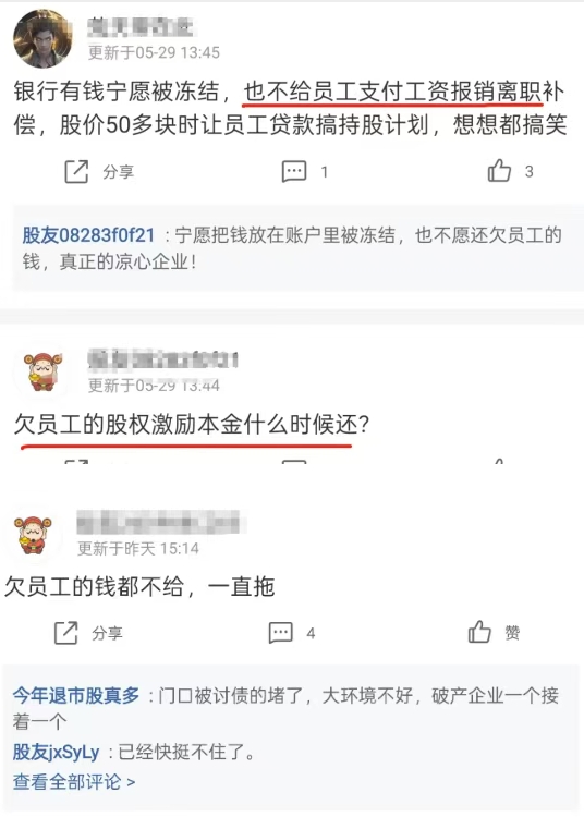 在裁员的同时,有知情人爆出,亚士创能已经好几个月没有发工资了,并且当年股权激励的钱也无法兑现,已经是怨声载道了。