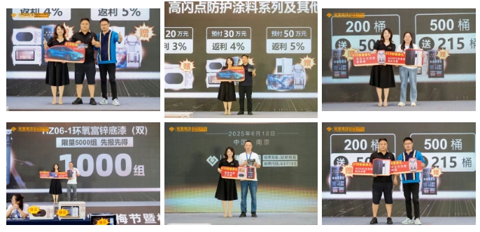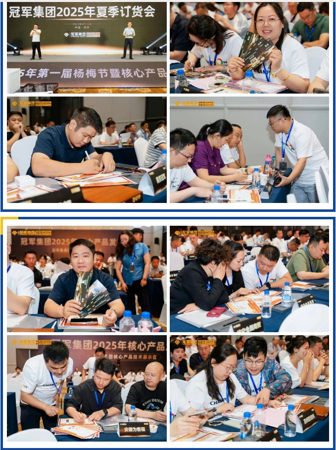 随后,石墨烯产品系列、钢结构防火涂料系列、水分散型产品等轮番登场,引发抢购热潮。截至6月18日下午5点,订单总额超3800万元,本次订货会总订货量较2024年同比上涨21%,亮眼的数据彰显出市场对冠军集团新品的高度认可。
