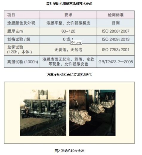 纯环氧低温固化涂层可抵抗发动机连续工作时高温对其产生的热冲击,同样能满足汽车发动机在极端条件下(如受高速机械加工)不出现碎落、卷层或周边翅片等性能使用要求。发动机用 伟德客户端官网技术要求如表3所示。