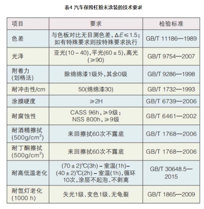 以汽车保险杠粉末涂装为例,其技术要求如表4所示。汽车零部件粉末喷涂如图3所示。