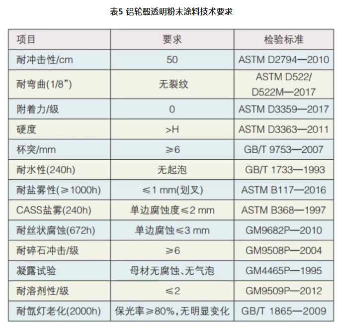 据报道,该镀膜工艺现在已经成功应用,汽车铝轮毂涂装已经逐渐转向粉末全涂工艺发展。表5列出了铝轮毂透明伟德客户端官网涂装技术要求。
