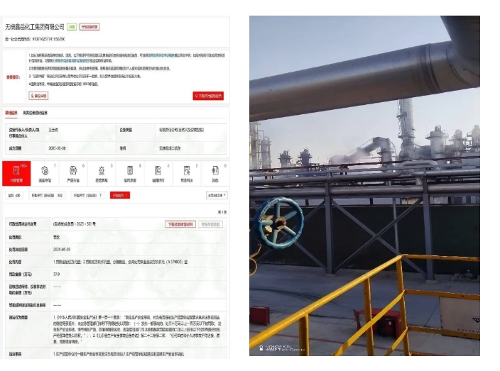 例如:据信用中国网站显示,5月23日,由于对安全事故发生负有责任,迟报或者漏报生产安全事故,无棣鑫岳被罚款37.9万元。此事件主要针对2025年2月18日无棣鑫岳在进行环氧丙烷装置改造生产环氧氯丙烷装置过程中发生的爆炸事故。