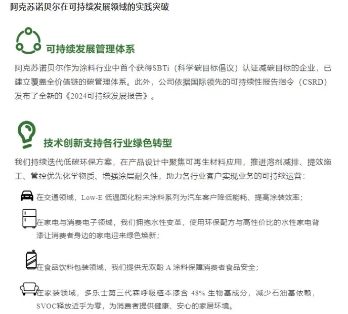 此次斩获 “2024-2025 福布斯中国可持续创新发展企业” 殊荣,既是对阿克苏诺贝尔在可持续发展领域长期深耕的肯定,更凸显公司在涂料行业转型中作为 “破局者” 的先行价值。未来,阿克苏诺贝尔将以可持续发展为创新内核,携手产业链伙伴构建低碳环保行业生态,共绘涂料产业绿色新图景。