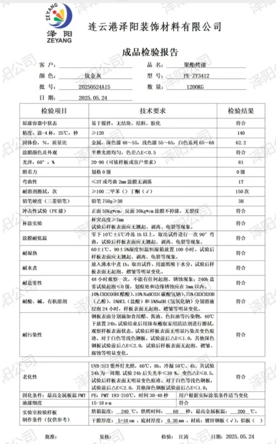 在卷材涂料领域,泽阳装饰更是精益求精,毫不懈怠。他们专注于提升产品的老化性能,让涂料在漫长岁月与复杂环境的考验下,依然能保持稳定的色泽与质感;精心打磨物理性能,确保涂料具备良好的附着力、柔韧性与耐磨性,为各类基材提供坚实可靠的防护;严谨把控化学性能,使涂料具备出色的耐酸碱、耐腐蚀等特性,从容应对各种恶劣的化学环境。泽阳装饰以实际行动诠释着对品质的执着追求,在行业内树立起了质量标杆。