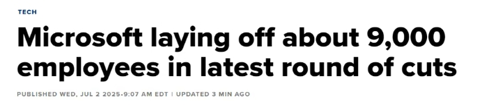 事实上,这并非微软的首次裁员,算上5月裁掉的6000个岗位以及1月的2000个岗位,这家科技巨头今年累计裁员比例已超7%。