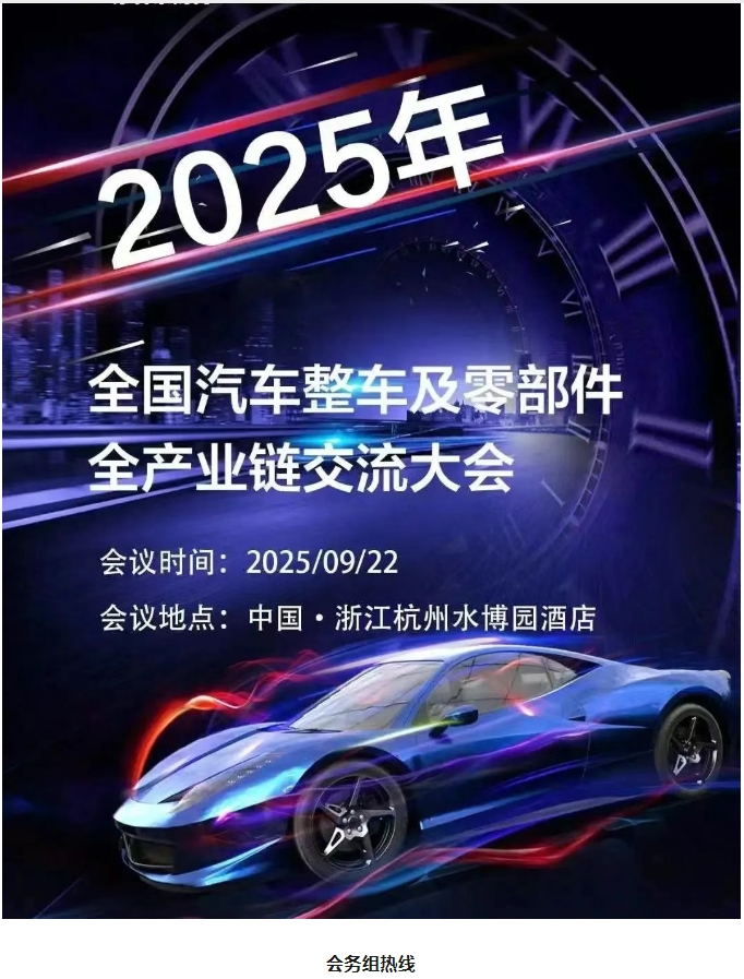 2025汽车整车及零部件全产业链大会,不仅是展示企业实力的舞台,更是驱动行业变革的引擎。9月22日,浙江杭州萧山!诚邀您共赴这场行业盛会,携手构建汽车产业新生态,共创行业发展新未来!报名从速!先到先得!