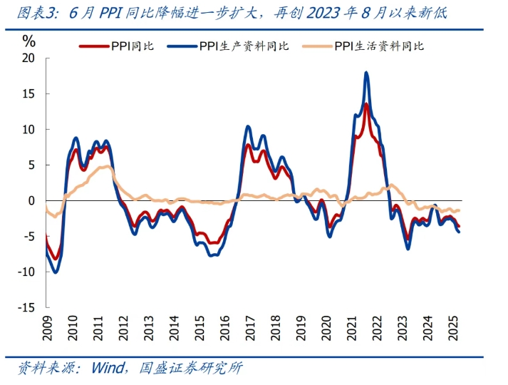 产能利用率下滑,供需关系平衡被打破,直接影响了PPI数据的表现。6月PPI同比-3.6%,低于前值和预期,再创2023年8月以来新低,环比-0.4%,同比增速连续32个月处于负增长区间。这形成了“产能利用率低→供过于求→PPI下行→企业减产→产能利用率更低”的恶性循环,进一步加剧了产能荒废的程度。