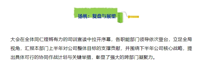 销售团队负责人以详实数据与生动案例,全面展示上半年市场开拓的丰硕成果与所遇到的问题,深刻剖析当前机遇与挑战。下半年的作战图已然绘就——目标清晰、策略精准、火力集中,销售铁军整装待发,誓言再攀业绩新高峰!