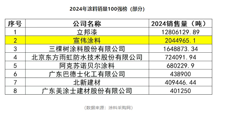 作为涂料行业权威媒体平台,涂料采购网最新发布的“2024年涂料销量百强榜单”引发业界强烈关注。在这份极具公信力的年度榜单中,全球涂料巨头宣伟再次彰显领军地位,蝉联榜单亚军。值得关注的是,这已是该企业自2019年以来连续第六年稳居全球第二,定义了涂料行业的“长青密码”。