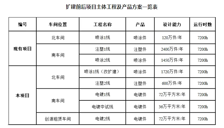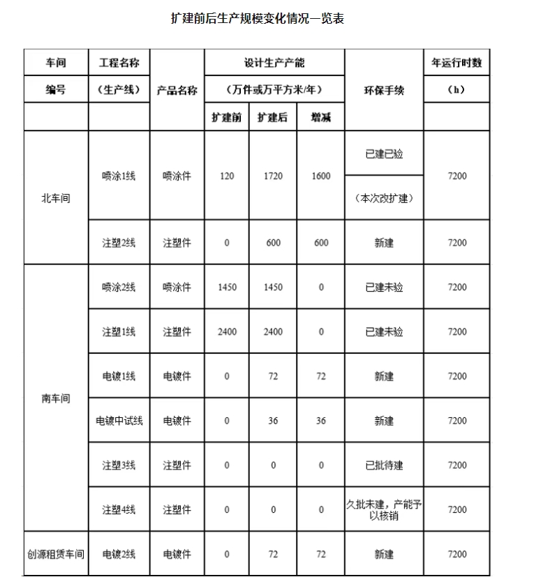 2019年,为了满足客户需求,稳定和发展公司业务,考虑到新厂区未完全建设完成,南通柏源汽车零部件有限公司继续租赁南通创源电化学科技有限公司的闲置车间对现有项目进行扩建,扩建至年产2400万件汽车内外饰注塑件的生产能力,该项目于2019年6月4日取得了环评批复,批复文号为皋开行审环表复[2019]15号,扩建年产5000万件汽车内外饰注塑件项目(仅投运一阶段:年喷涂注塑件120万件)及年产2400万件汽车内外饰注塑件改扩建项目已于2019年8月22日完成自主验收。