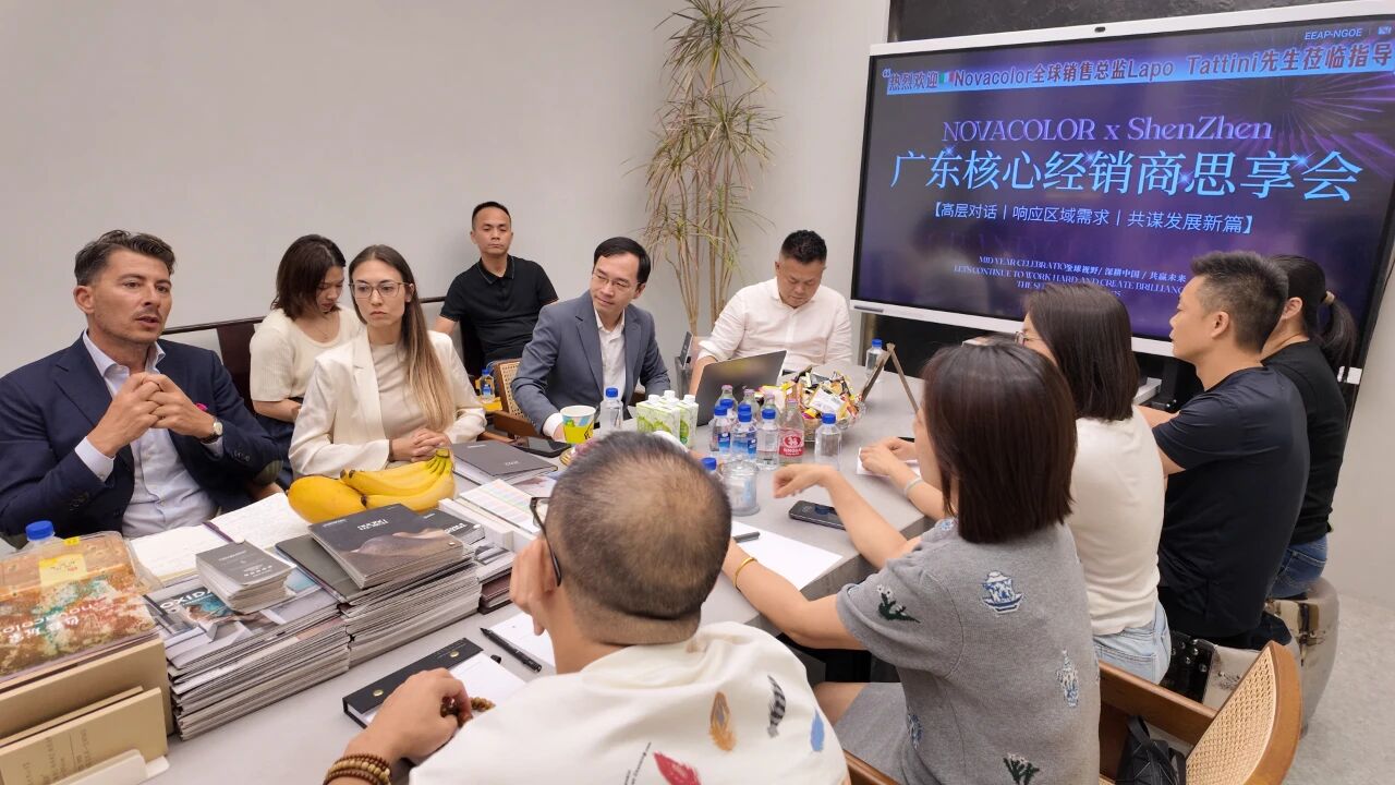 来自广东及江西地区的优秀经销商代表齐聚一堂,与Novacolor全球销售总监Lapo Tattini先生、中国区负责人及团队共商发展大计,围绕市场战略、产品创新与渠道发展展开深度对话,进一步夯实品牌与经销商之间的合作纽带。
