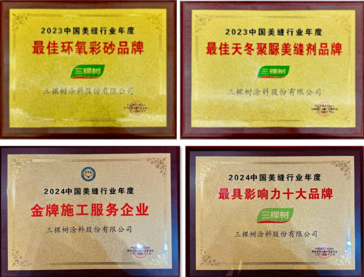 真正的行业引领者,从来都以实力赢得认可。三棵树在美缝领域的深耕,收获了市场与行业的双重肯定:连续五年蝉联“十大最具影响力品牌”,2023年更一举拿下“最佳环氧彩砂品牌”“最佳天冬聚脲美缝剂品牌”两项重磅荣誉,2024年还获得“金牌施工服务企业”,印证其产品力的全面领先;近日,国内领先咨询机构CIC灼识开展专项研究,数据显示“三棵树美缝剂全国零售销量第一”。三棵树“全屋美缝”模式已成为行业标杆,引领美缝行业从“单一产品竞争”走向“产品+服务”的综合价值新阶段。