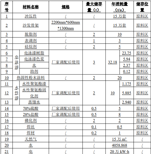 电泳漆用量核算:项目沙发骨架需进行电泳工艺,根据建设单位资料, 单件工件电泳面积约为4m²,沙发骨架年用量为15万套,总电泳面积为60 万m²,约有1%的不合格工件重新电泳涂装,每个工件厚度为15μm使用电泳漆配比为水:树脂:色浆:助剂=10:100:25:0.5(质量比),