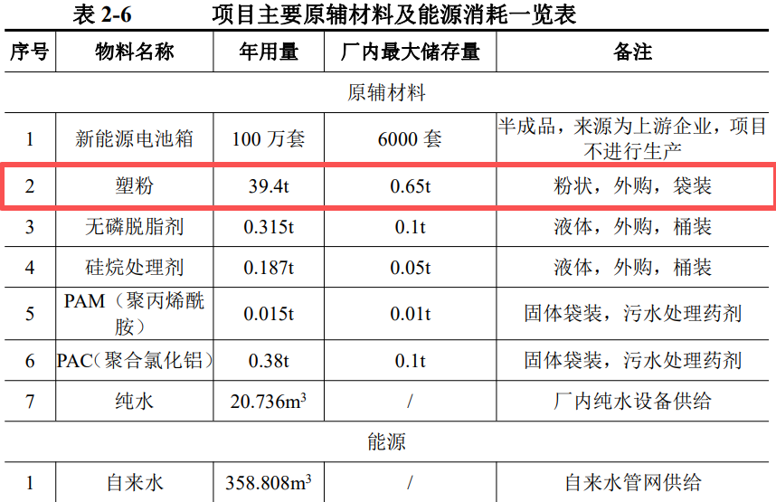 本项目对外来的新能源电 池箱进行脱脂、硅烷化、喷塑处理,不进行前期的机加工,依据《建设项目环 境影响评价分类管理名录》(2021 年版),本项目属于“三十、金属制品业 33-67 金属表面处理及热处理加工-其他(年用非溶剂型低 VOCs 含量涂料 10 吨以下 的除外),应编制环境影响报告表。