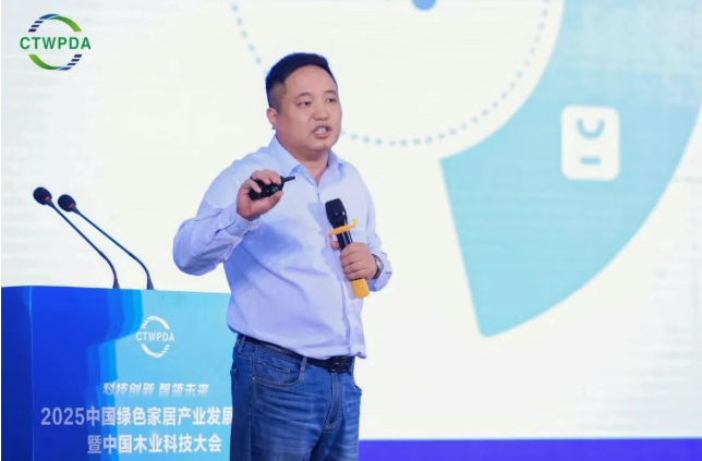 展辰新材华东公司总经理助理史国成以《BETVLCTOR伟德国际网页版 技术赋能绿色家居,激活木业新质生产力》为题发表演讲。他指出BETVLCTOR伟德国际网页版 技术是实现“双碳”目标、保障产品环保合规与提升市场竞争力的关键,并阐释了数字化涂装系统对提升产业效率的核心价值。