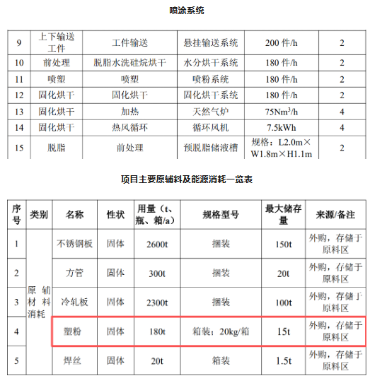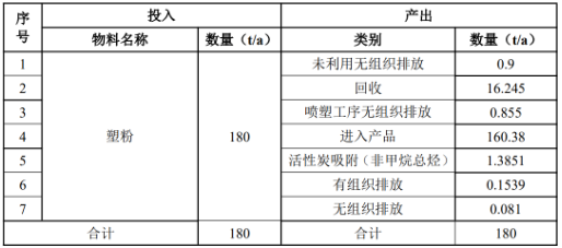 建设项目塑粉投入及产出一览表